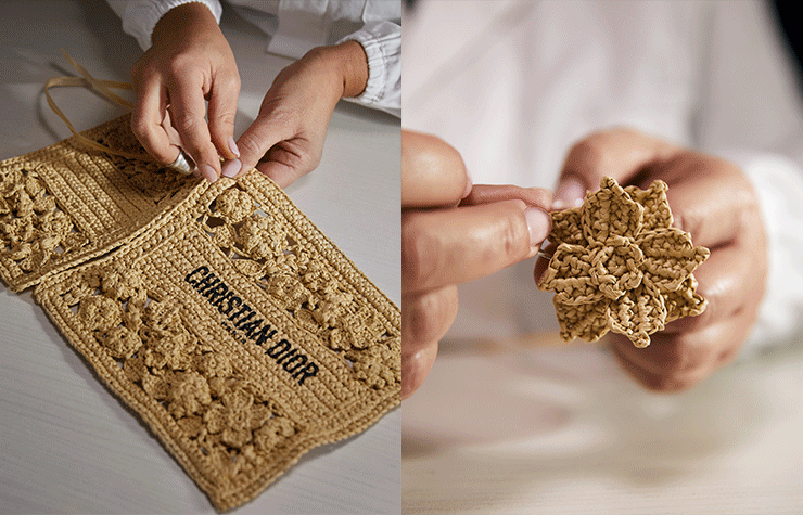 毎シーズン再解釈が加えられる「ディオール ブックトート」。2023年春夏 コレクションでは、牧歌的なオーセンティシティを纏うラフィア素材で登場しました。創設者 ムッシュ ディオールの自然や植物への愛情にオマージュを捧げる、このアイコニックな「ディオール ブックトート」は、手作業で繊細に編まれた魅惑的な花々で彩られ、ディオールのアトリエが誇る、極めて高い精度が必要とされるクロシェ(かぎ針編み)の技法によって、命が吹き込まれています。