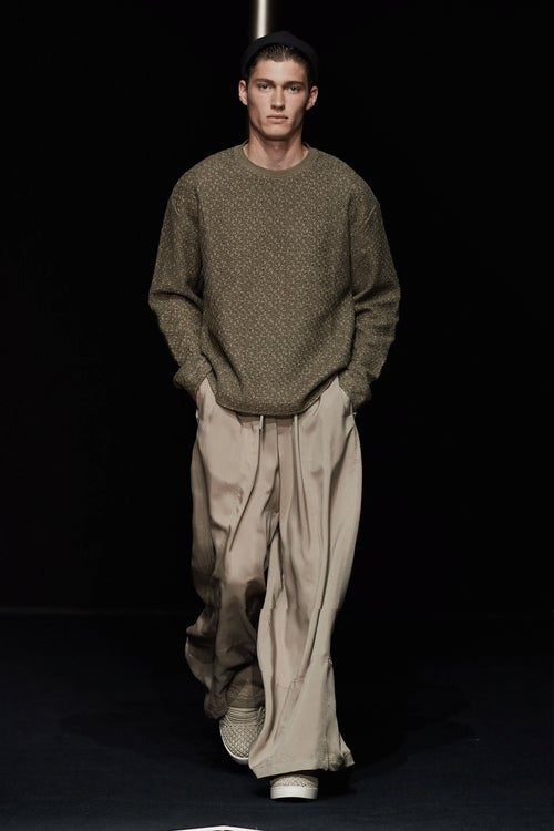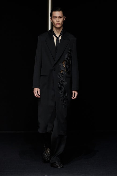 どことなく漂うエキゾチシズムと、いかなる時も美しく流れるようなデザインは、夜だけではなくどんな時間帯にも魅力を放ちます。なぜなら、イヴニングスタイルは常に日常の一部だからです。 モノクロームやホワイト、サンド、ブラックといったカラーを軸にコンパクトにまとめられたコレクションは、ローブジャケット、ロングダスターコート、たっぷりとしたワイドパンツ、ノースリーブチュニック、刺繍入りのセーター、ショートパンツ、ブレザーなどで構成されます。ボディと衣服の間に生まれる空間が動くたびに生き生きと脈動するように、筋肉の上を流れるような躍動感のあるラインを作ります。