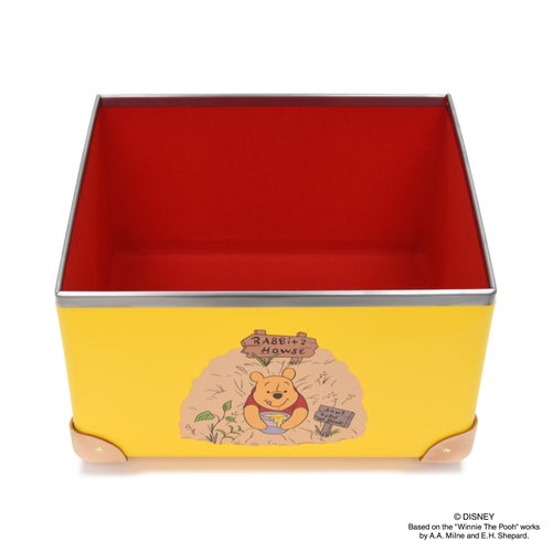 ロンドンスクエア ライニング おうち時間もプーさんと一緒に。アイコニックなカラーの外装には、大好物のハチミツを食べすぎて、ラビットの家から出られなくなったプーさんが描かれています。内装はプーさんの上着を想起させるレッドのライニングが施され、外装とのコントラストを生み出すとともにプーさんの暖かさを感じることが出来るストレージボックスです。