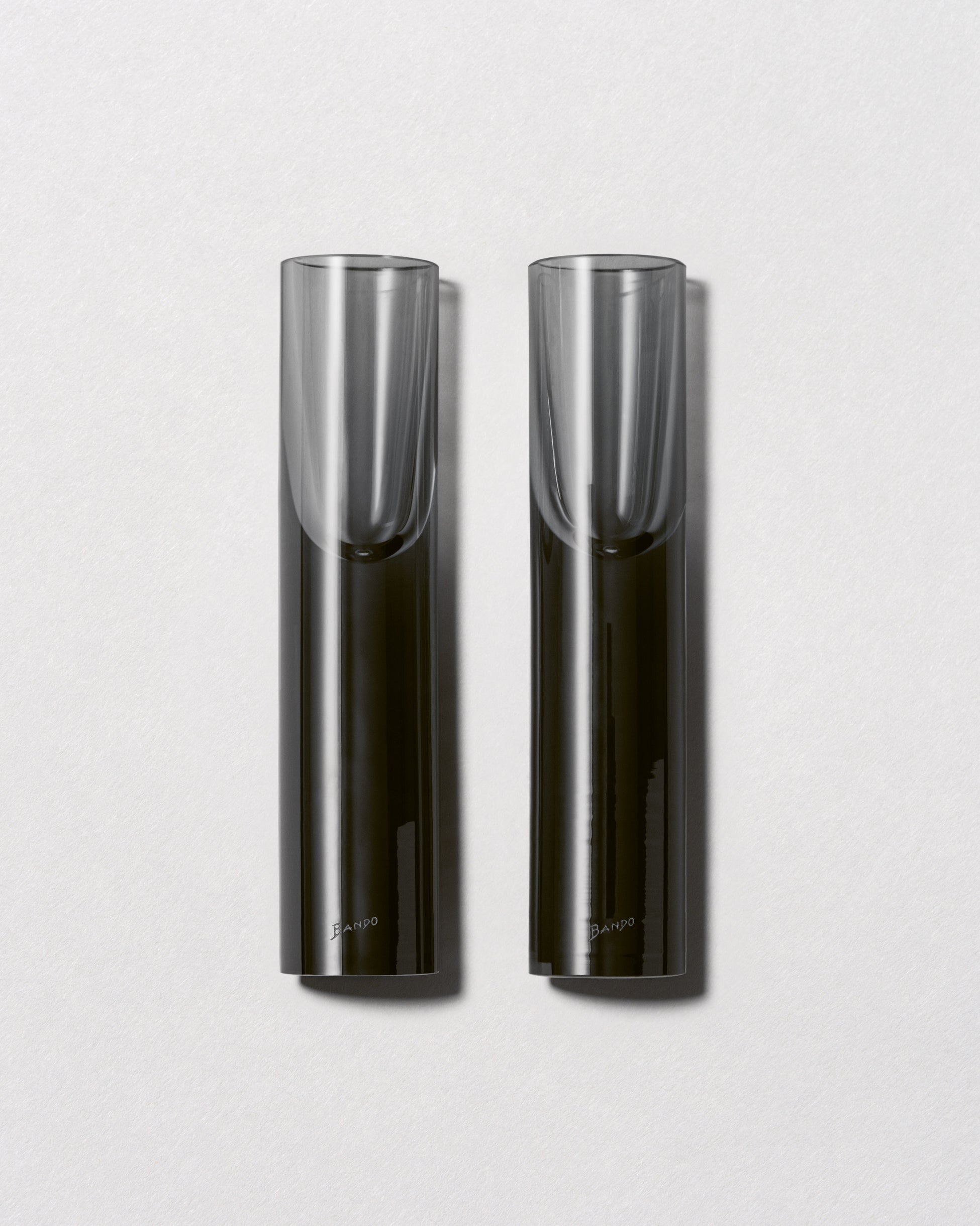 ハンドメイド ショットグラス 洗練されたくつろぎと喜びを演出する、スモークグレーのハンドメイド ショットグラスには、1930年代の 「Bando」マークが入っています。このマークは、1930年代にマッテオ・チェッリーニがダンヒルのために作った、ゴールドとシルバーのアクセサリー専門メーカーを意味しています。