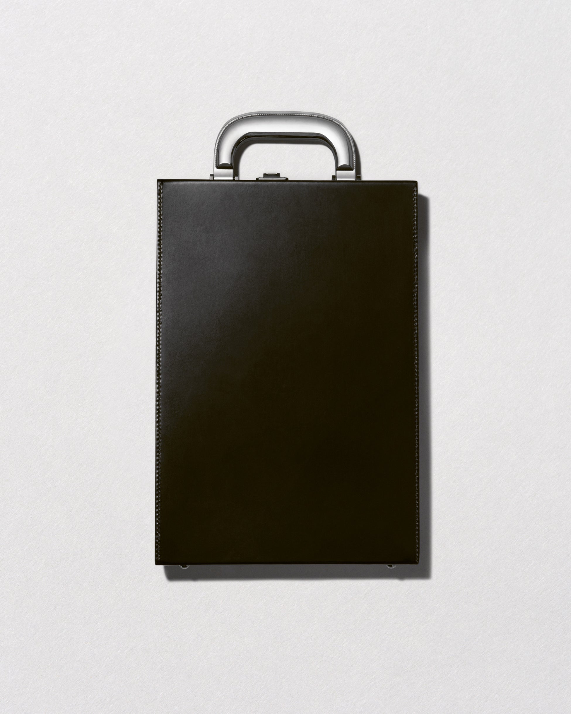 アタッシュケース ケース オブ ディライツと中に入っているすべての宝物を保護するためのケースです。このキャリーケースはロンドンの工房で、美しいスムースブラックのブライドルレザーを使用し手作りされています。特徴的な金具とロックは、熟練の職人によってイタリアで作られ、亜鉛メッキが施されています。