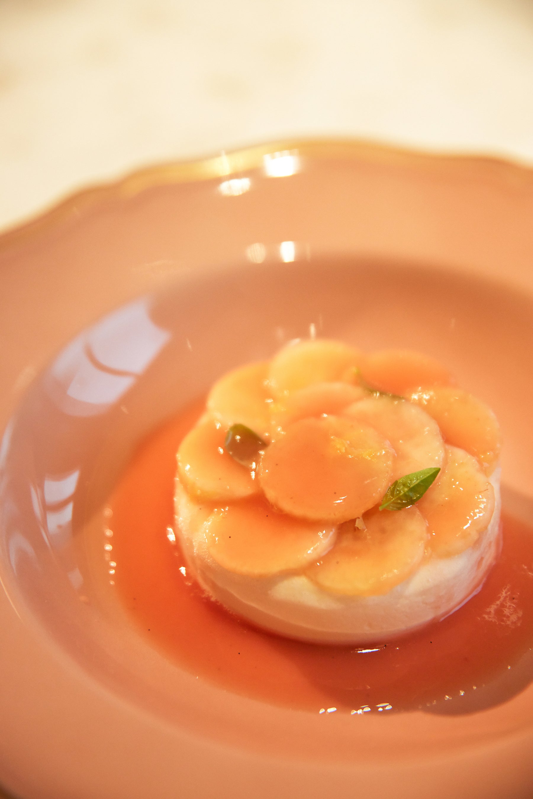 「はちみつのムースと桃のソルベ」ディナーコースまたはアラカルト ¥3,200