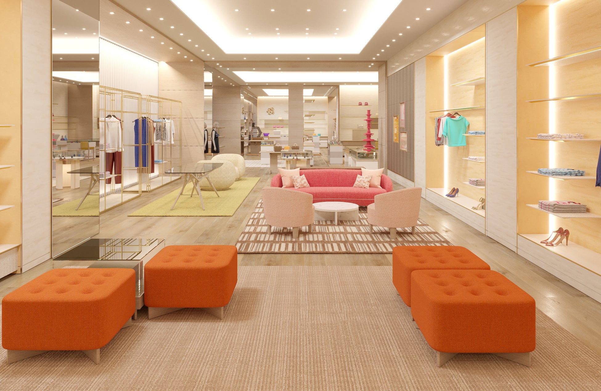 増床した店内にはフェミニンで洗練された空間が広がり、落ち着いた雰囲気の中、メゾンの多彩な世界観を体感できます。