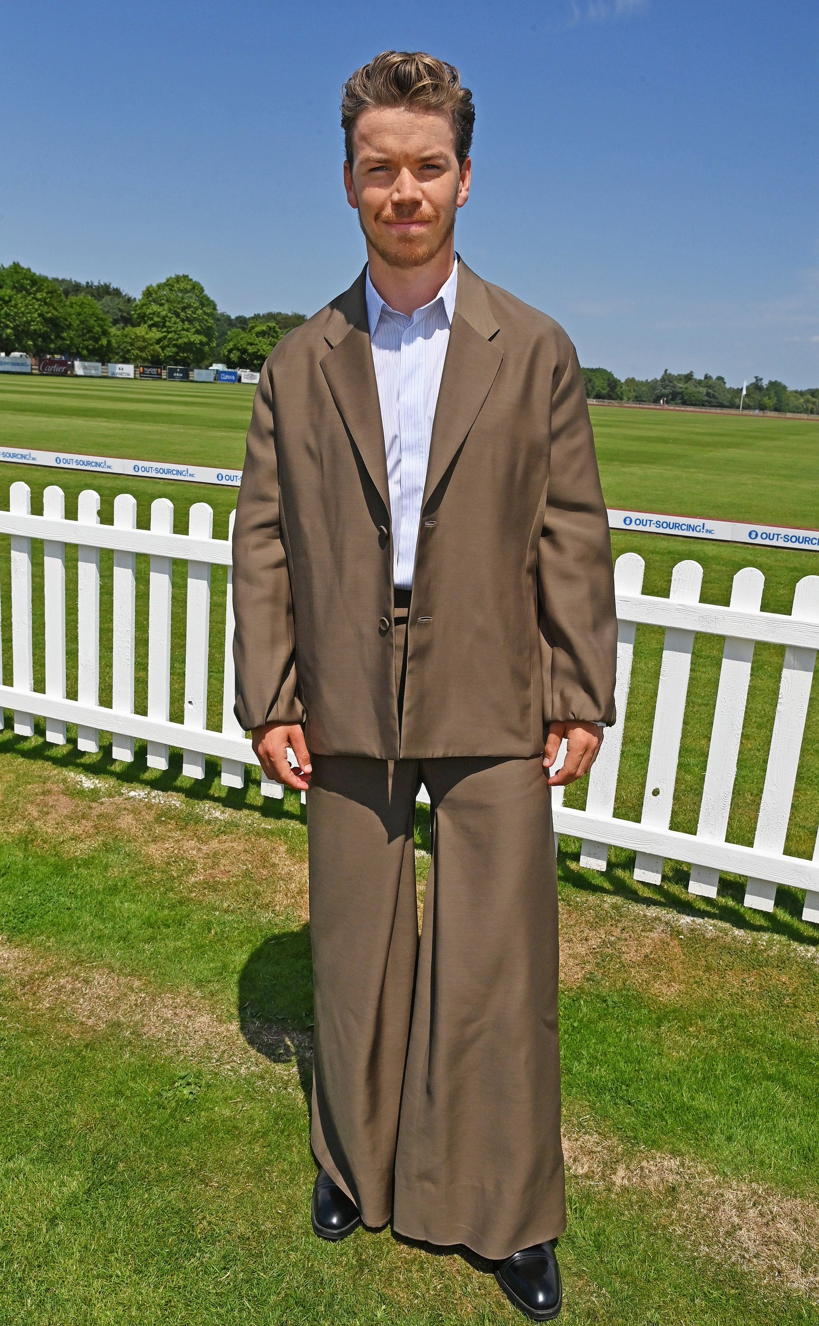 6月25日にエガムで開催された、ポロの競技トーナメント“The Out-Sourcing Inc Royal Windsor Cup”に姿を現したウィル・ポールター。キム・ジョーンズによる2023-2024年ウィンター メンズ コレクションより、ブラウンウールとシルクのドリルジャケットにブルーストライプのコットンシャツ、ブラウンウールのパンツを合わせた装いで登場しました。