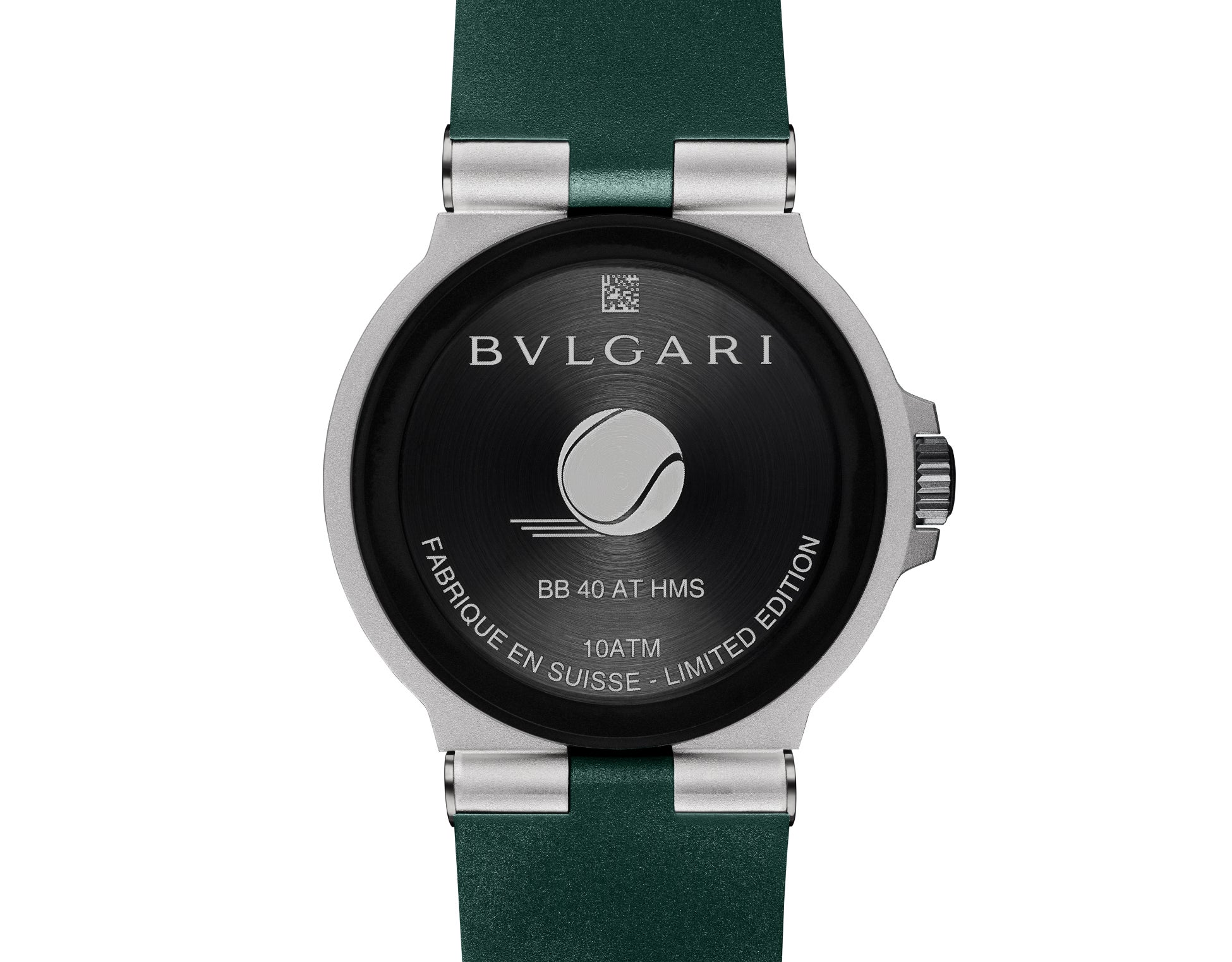 「ブルガリ アルミニウム マッチポイント 限定モデル」は、テニスの愛好家やスポーティなライフスタイルを愛するすべての人へ向けた限定タイムピースです。グリーンカラー、左リューズ、最高の心地よさをもたらすベルクロ(R)ストラップ、そしてケースバックのテニスボールの刻印が特徴です。