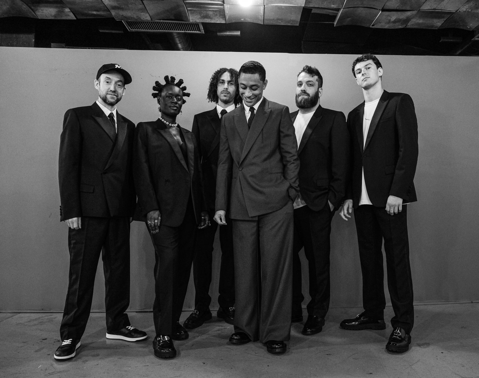 モントルー ジャズ フェスティバルにてパフォーマンスを行ったロイル・カーナー。キム・ジョーンズによるディオールのメンズ コレクションより、グレーウールの「テイラー オブリーク」ジャケットにパンツ、ホワイトコットンシャツ、ブラックシルクタイ、ブラックレザーのダービーシューズを合わせ、同じくディオールのクリエイションを纏ったバンドのメンバーとともに登場しました。