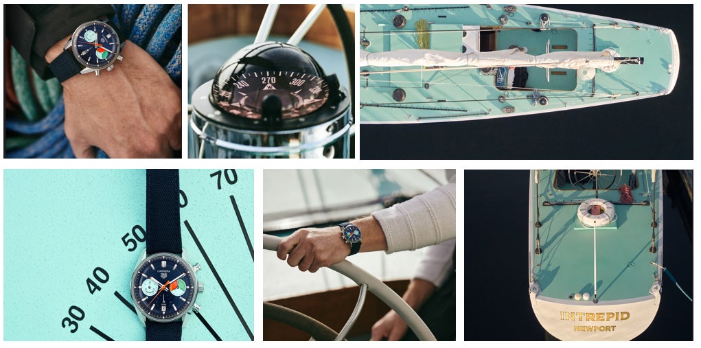 イントレピッド号はこのレースに4戦全勝という圧倒的な結果で優勝しました。ホイヤーは優勝を記念して特別なクロノグラフ「スキッパー」を誕生させました。30分計サブダイヤルに手を加え、レガッタでスタートラインを通過するまでの15分間をさらに5分単位に3分割してカウントダウン機能を搭載しました。