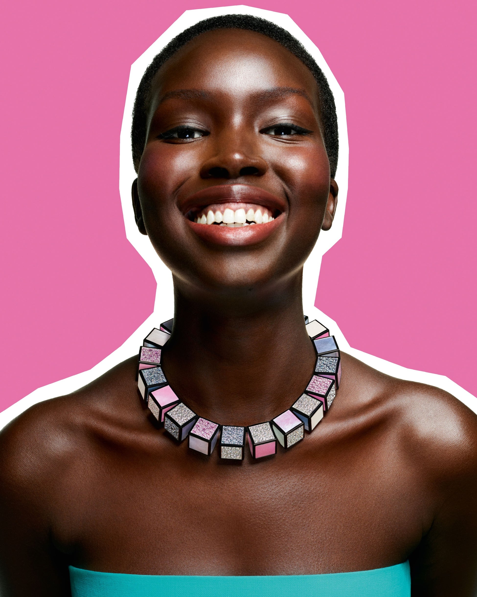 クリエイティブレクターの強い思いと情熱から生まれたハイジュエリーコレクションは、ベーシックなシルエット、シンプルなデザインに対して、ポップなカラー使い、贅沢なほどのボリュームでユニークな表情に仕上げられました。 まるで10代の頃のダイアリーのように、クレールのムードボードはポップな色彩、明るい表情、幾何学的なデザイン、モチーフで埋め尽くされています。 球体、立方体などの図形。 挑発的な表情や満面の笑みのモデル。 幼き日に影響を受けた思い出のデザインから、新しいハイジュエリーコレクションの輪郭が浮かび上がります。