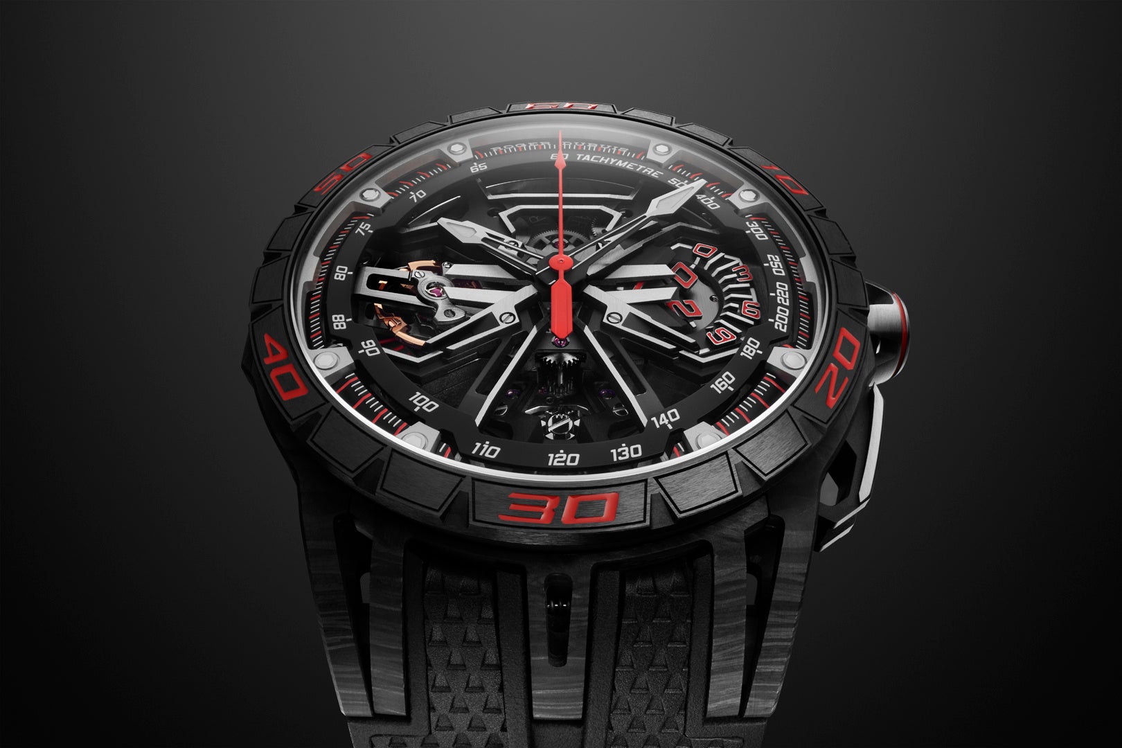 先駆的なメカニズム。ハイテクノロジー素材。極限のパフォーマンスを追究する燃え尽きることのない情熱。表現力豊かなデザインを生み出す時計製造界の最高速ランナーであるロジェ・デュブイは、モータースポーツ界の最高峰が擁する価値観から得られたインスピレーションを、自らの創作に落とし込んでいます。