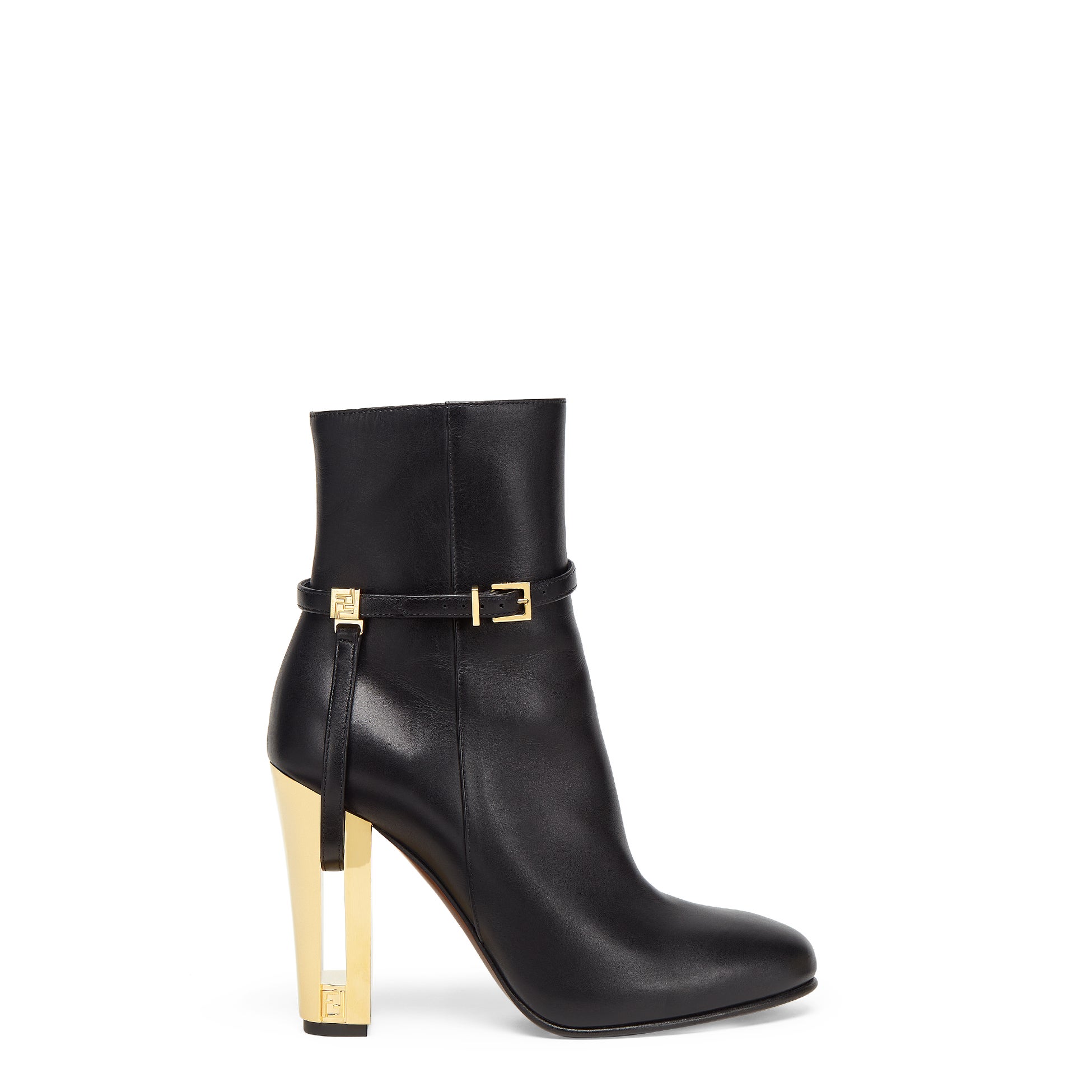デルフィナ・デレトレズ・フェンディ自身がストーリーとなり、フェンディのクリエイションに欠かせない「デュアリズム(二面性)」が探究され、「デルフィナ」シューズコレクションにも表現されています。ゴールドのハードウェア、レースアップ カットアウト、ハーネスストラップなど、ソフトなパンクのディテールを取り入れながら、コレクションに洗練された雰囲気を加えています。フェンディ 2000年秋冬 ウィメンズコレクションのアーカイブシューズを再解釈したアーキテクチュラルなゴールドのチャンキーヒールは、くり抜かれた中央のスペースに「FF」のエンボスロゴをあしらったハーネスストラップが通され、エレガントでありながらフェティッシュな要素でひねりを効かせています。