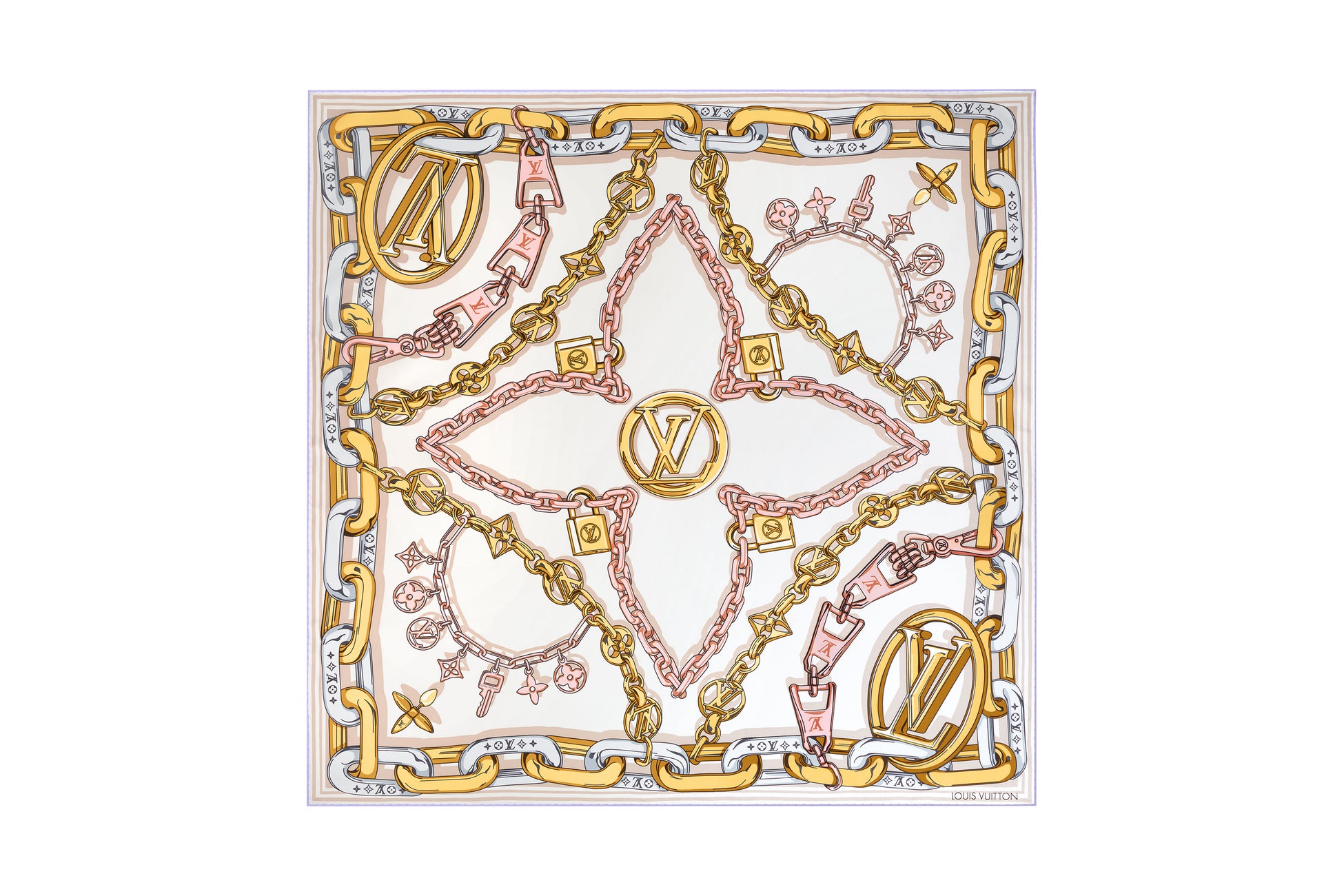 絵画的に表現されたモチーフにメゾンのアーティスティックなエスプリが薫るスクエアスカーフ「カレ90・ビジュエルド」。ルイ・ヴィトンのファッションジュエリー・コレクションにオマージュを捧げ、カラフルなチェーンやチャーム、ロックをあしらった、目を引くアイテムです。精緻に施されたシルクスクリーンプリントの技法とエッジ部分の「Louis Vuitton」シグネチャーに、メゾンの卓越したクラフツマンシップが光ります