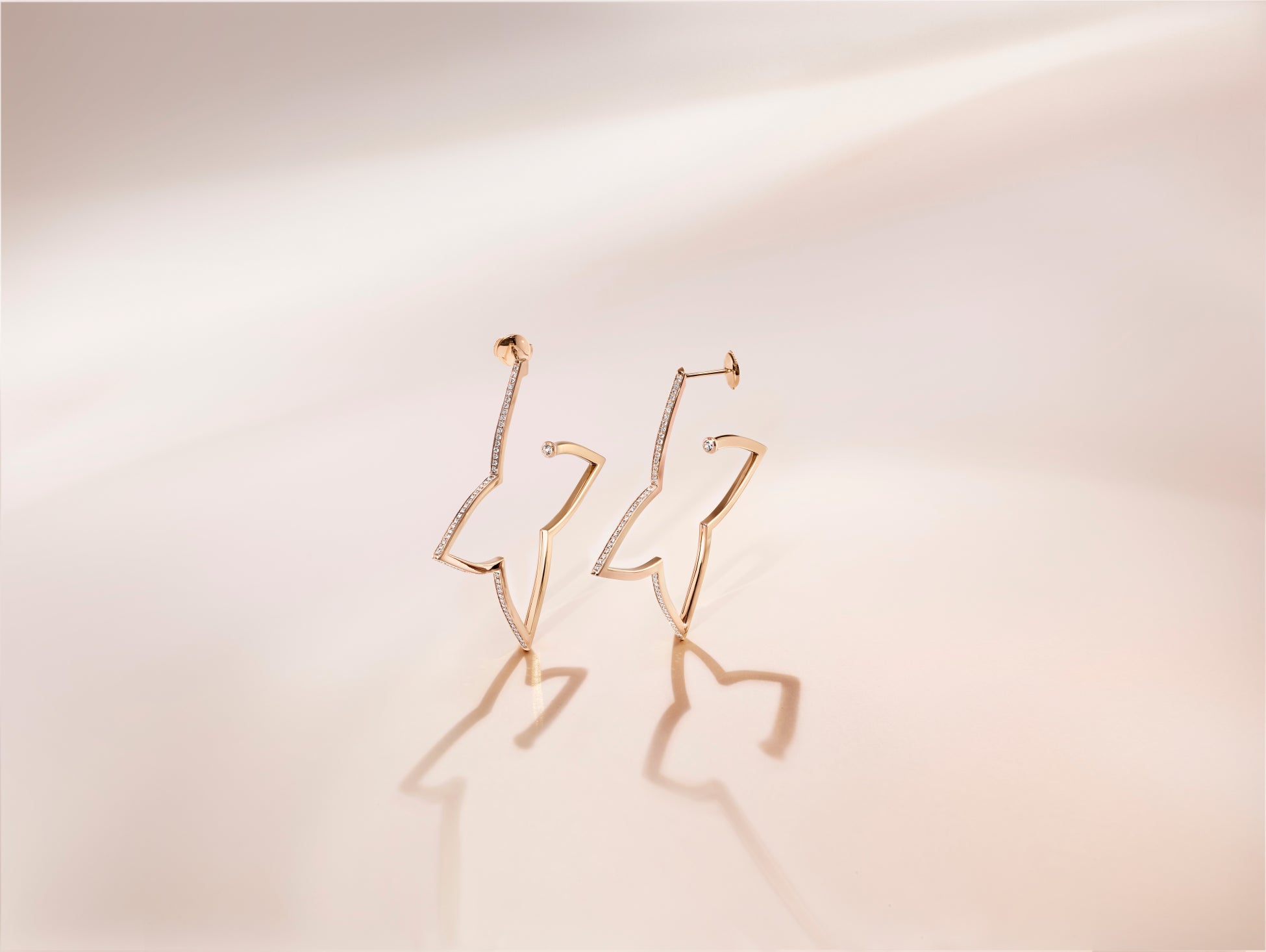 「ルイ・ヴィトン ブロッサム」のオリジナリティと大胆さは、特にイヤリングでその輝きを放ちます。オーバーサイズのフープは、圧倒的なボリューム感をもたらし、ダイヤモンドの繊細なラインで強調されたオープンフラワーのデザインが、ステートメントジュエリーとして纏う人の顔を縁取ります。控えめで小ぶりなミニフープは、耳たぶにシックに寄り添いながら、ダイヤモンドのスタッズが上品なタッチをプラス。フラワーのシルエットを象ったフォルムが、紛れもない個性を演出します。