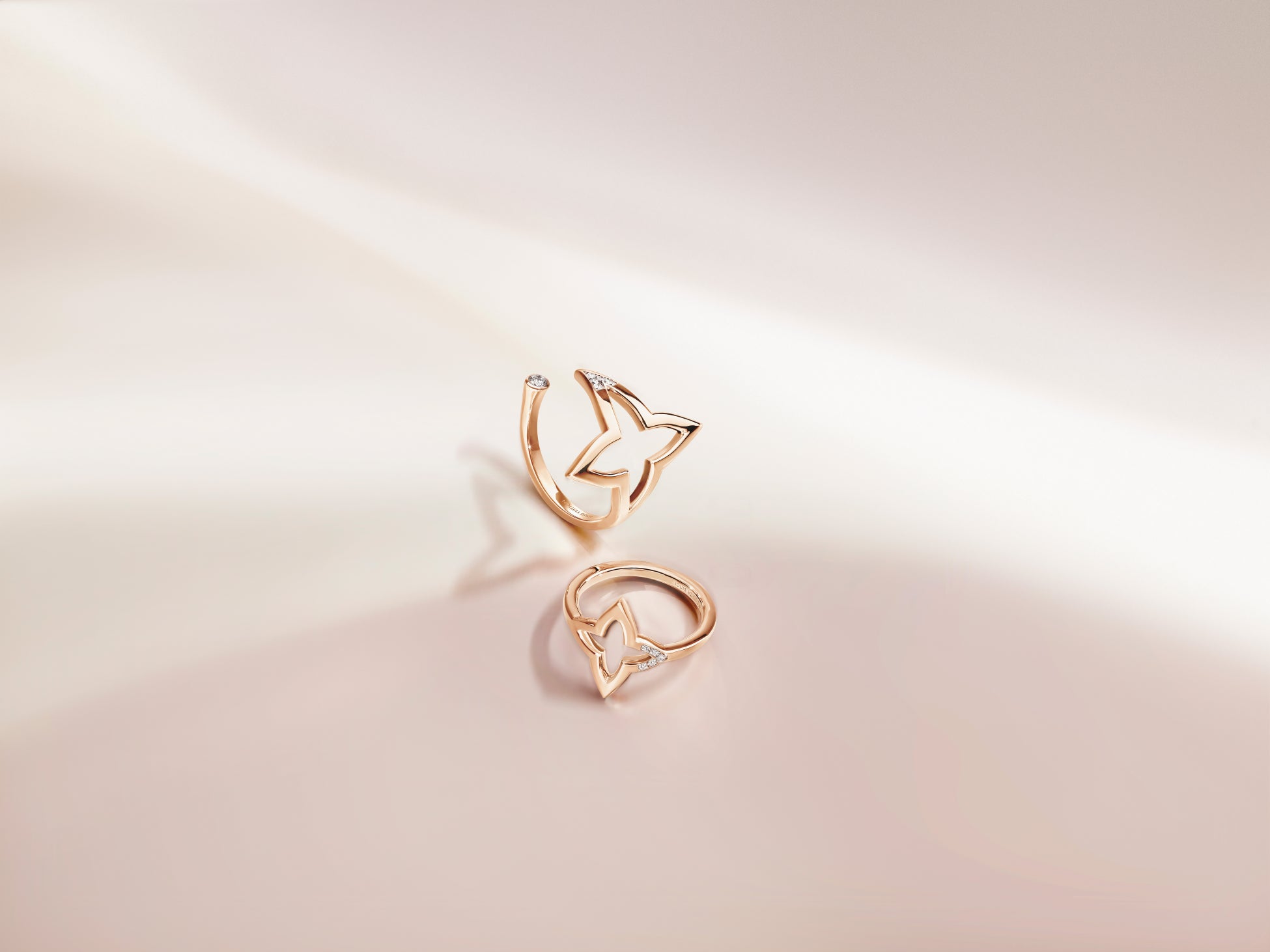 リングは2種類のサイズで展開。ミニリングは、花びらにあしらわれたダイヤモンドがアクセントとなり、クラシカルで繊細な印象を感じさせます。一方、ラージリングは、フラワーのシルエットを想わせるオープンなデザインに、一粒のダイヤモンドとパヴェ仕上げを組み合わせ、より大胆な存在感を演出。他のコレクションと同じように、ホワイトゴールドのアイテムにはフルパヴェのダイヤモンドがセッティングされ、一際プレシャスなデザインとなっています。 1本で、あるいはインパクトを放つ重ね着けでも、さまざまなスタイルで楽しめるリングは、いずれも「ルイ・ヴィトン ブロッサム」コレクションの多彩なエスプリを体現しています。異なるサイズ、テクスチャー、高さ、そしてボリュームをミックス & マッチして、自分だけのパーソナルなスタイルと創造性を表現できます。