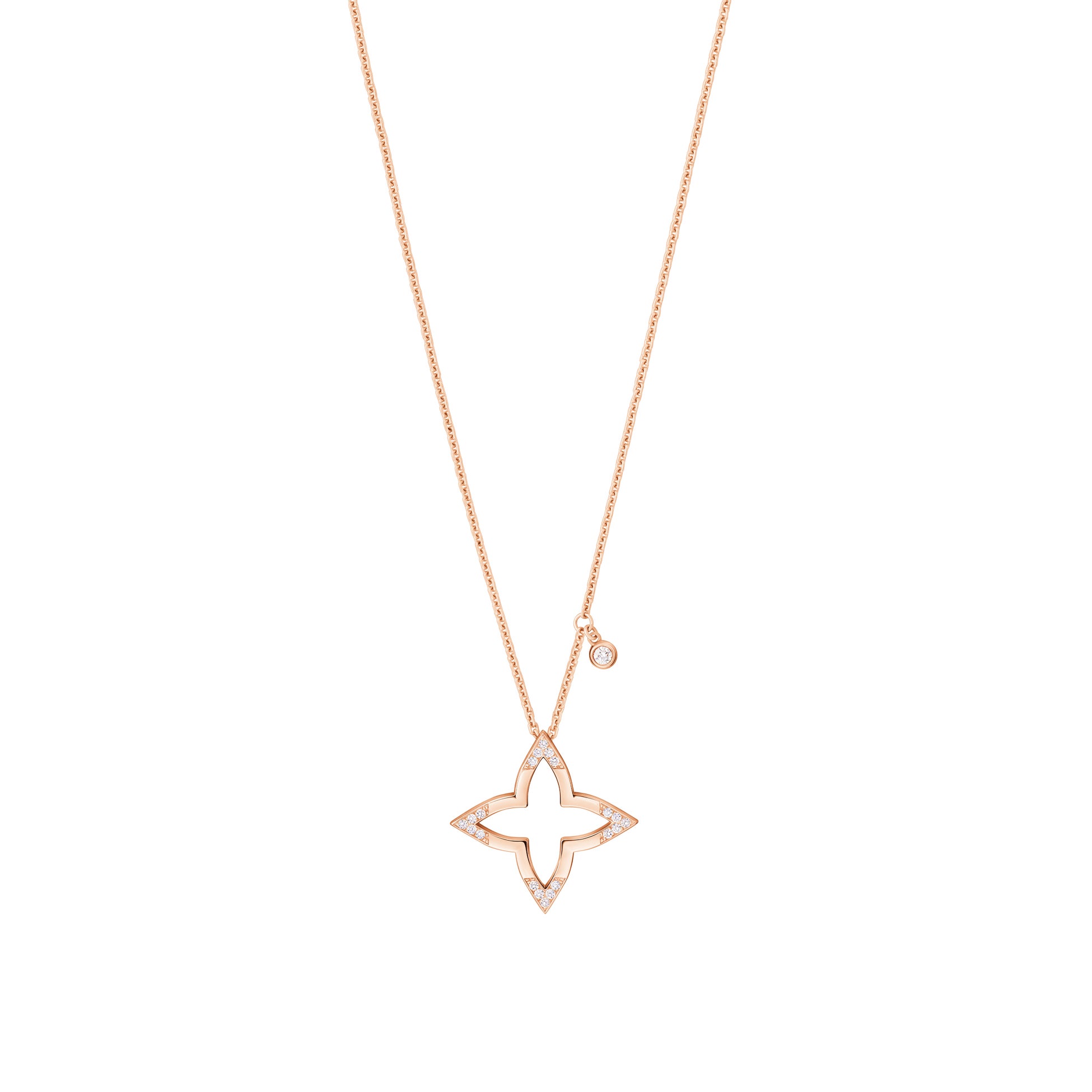 また、モチーフの繰り返しと重ね着けもペンダントのテーマです。チャームのように揺れる小ぶりなラウンドブリリアントカットダイヤモンドが、さまざまな長さに調節可能なチェーンにあしらわれており、ピンクゴールドとホワイトゴールドを採用することによってさらにスタイリングの幅が広がります。
