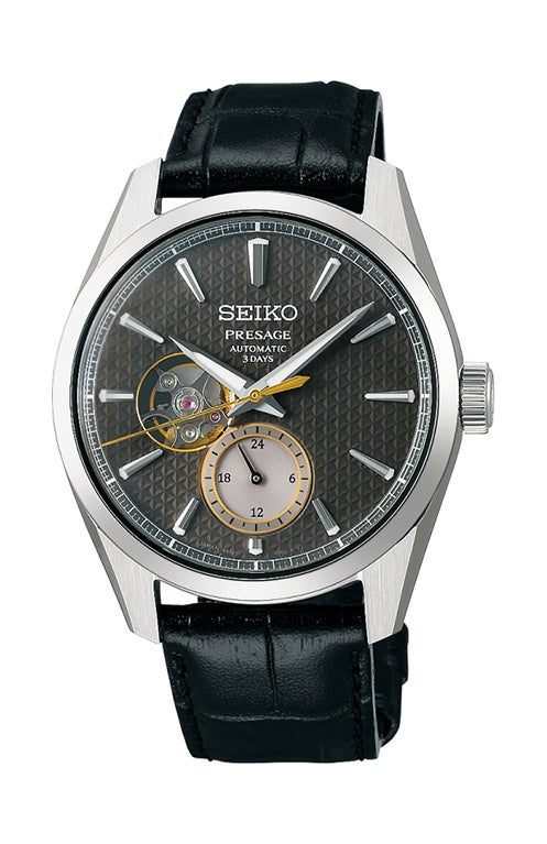 本作には、パワーリザーブ3日間(約72時間)のメカニカルムーブメント キャリバー「6R5J」を搭載。ぜんまいを最大に巻き上げておけば、金曜日の夜に時計を外しても月曜日の朝まで動いており、ビジネス使いにも重宝する高い実用性を備えています。ダイヤルには、「AUTOMATIC 3 DAYS」の文字を表記しました。
