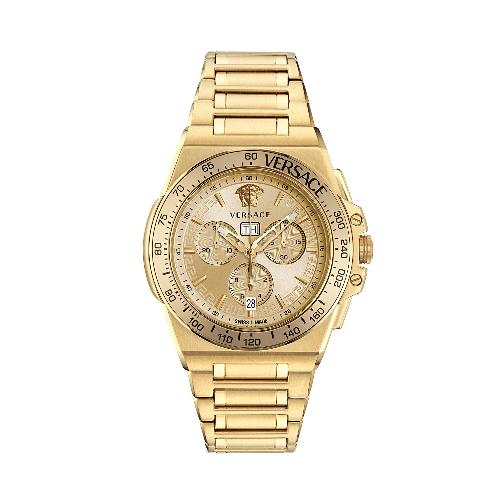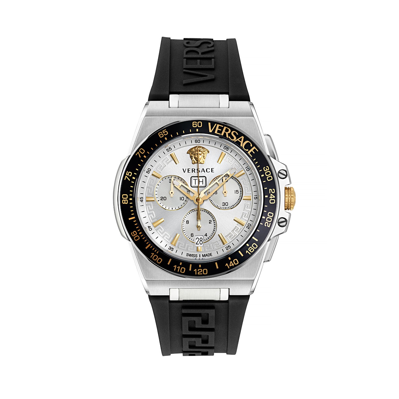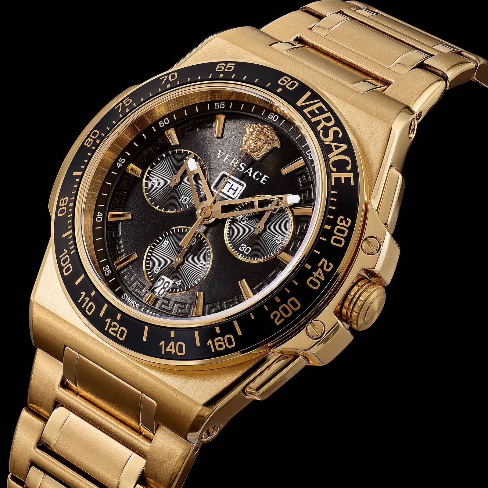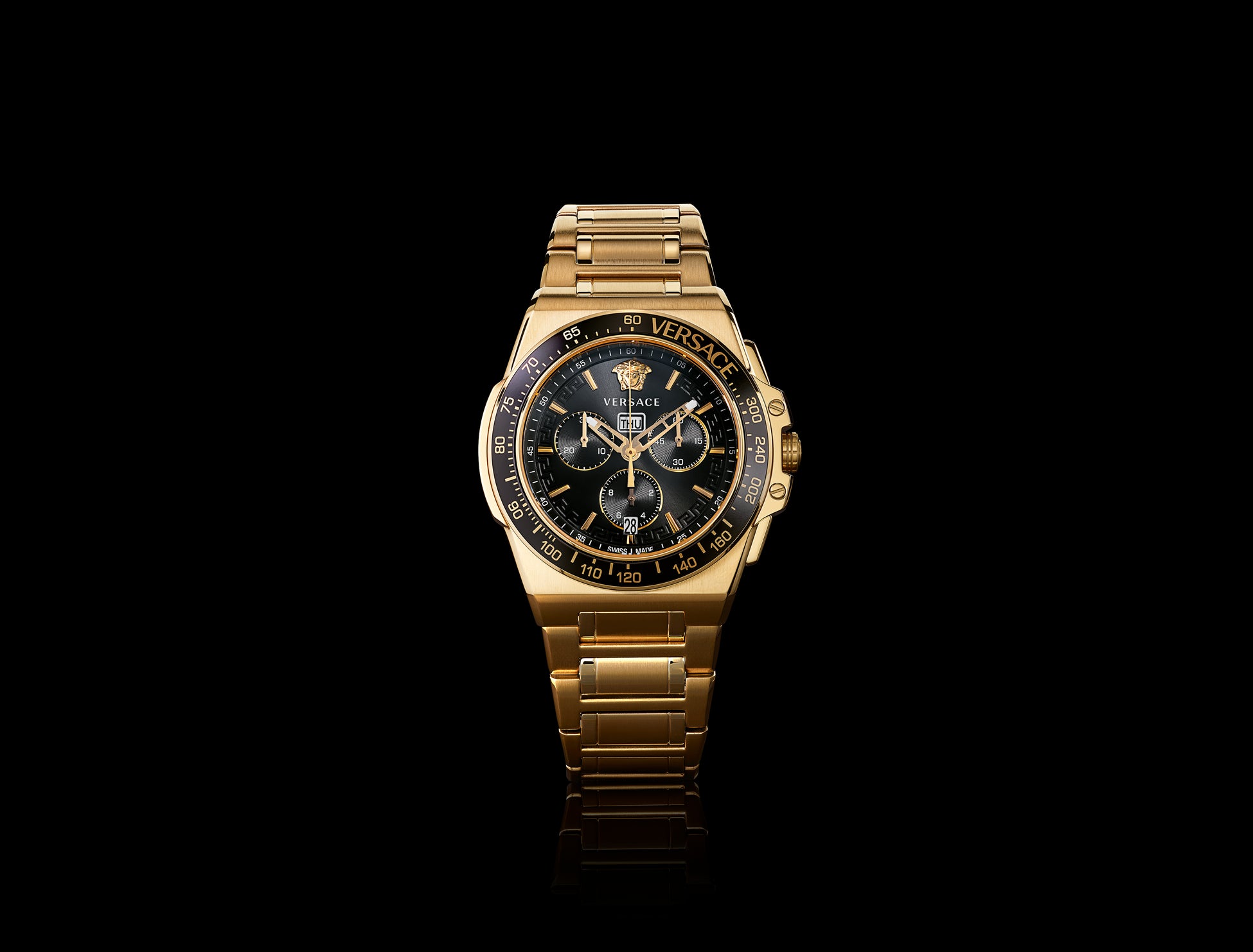 ヴェルサーチェの腕時計から、デイデイト表示を搭載した、クロノグラフのアイコンモチーフ「 GRECA EXTREME CHRONO」を発売