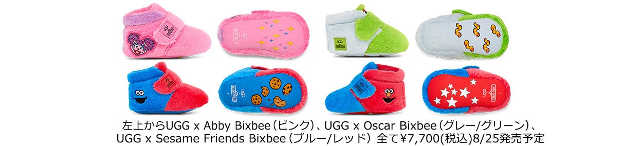 1969年以来、セサミストリートはフレンドシップ(友情)を称賛してきました。今回の UGG(R) x Sesame Street の最新コレクションは最高の仲間たちが登場します。UGG(R)は、世界中の子供たちがより賢く、強く、優しく成長することを50年以上にわたって支援してきたセサミストリートの継続的なミッションを讃えます。 面ファスナーで簡単に開閉できるふわふわの Bixbee(ビクスビー) ブーティは、100%リサイクル・ポリエステル製の柔らかなフリースで小さなお子様の足を包み込みます。セサミストリートのキャラクターをモチーフに、ピンクはアビー、グレー&グリーンはオスカー、左右で色が逆転するレッド&ブルーはエルモとクッキーモンスターに着想を得た、3つのカラーバリエーションで展開します。