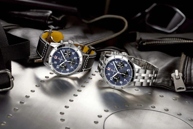 ブライトリング 室屋義秀リミテッド、褐色(かちいろ)由来の濃紺と赤秒針のクラシック アヴィを発表