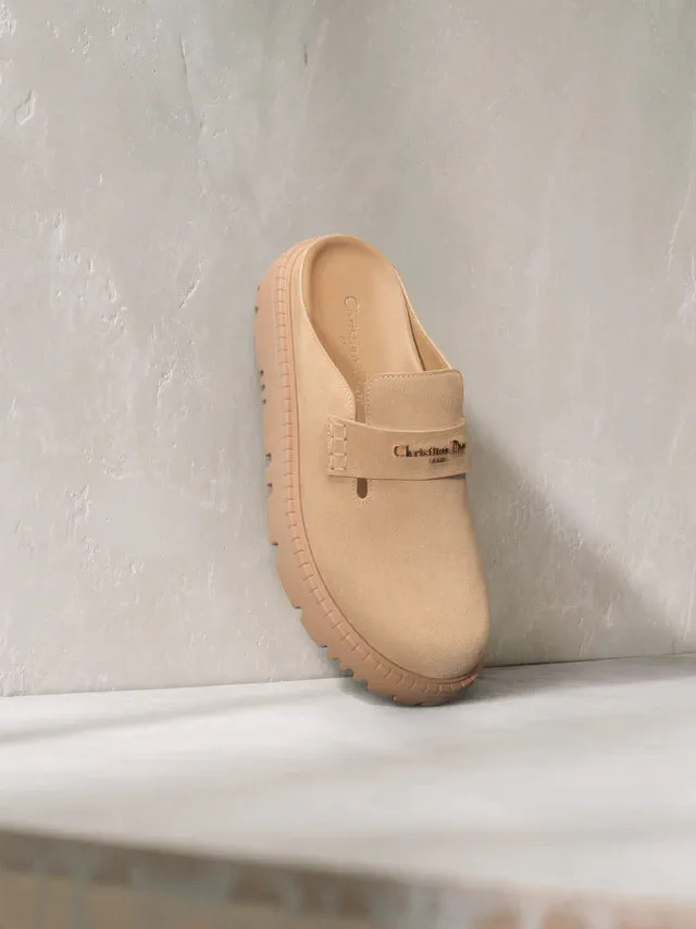 クラシックなローファーのコードを出発点に、アトリエは構築的なフォルムを再解釈しました。展開は二種、かかとを解放するオープンバックのミュールと、すっきりした印象を与えるローヒール。素材はスエードで、色はブラックとベージュの洗練されたパレットです。フロントにはゴールドレタリングの「Christian Dior Paris」シグネチャーが配され、最終仕上げとして品位を添えます。控えめな装飾ゆえ、アクセサリーやバッグとの連携も取りやすい点が魅力です。