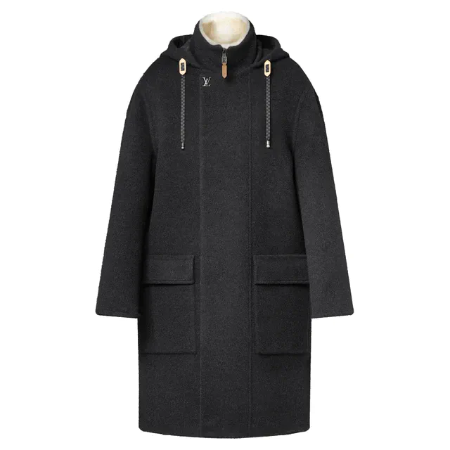 冬のバカンスに寄り添うコートは、気品あるグレーのダブルフェイス素材で仕立てられています。ウール、カシミヤ、シルクを絶妙に混紡し、内側にはジャカード織りで大胆に描かれたモノグラム モチーフが潜みます。フードは調節が可能で、ハイカラーにはシアリングのライニングを施して温もりを確保。さらに、ダミエ·パターンのドローストリングや前立て上部に配されたLVオーナメントが、控えめながらも上質な存在感を放ちます。ルイ・ヴィトンが提案するこのコートは、機能性と美しさを絶妙に融合させた冬のマストアイテムといえます。