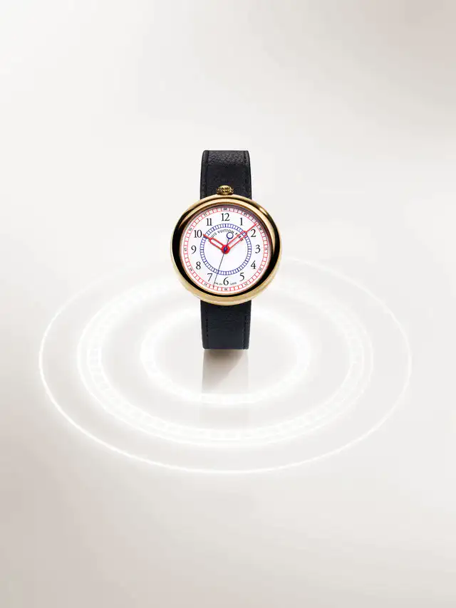 1988年に発表された「LV I」「LV II」は、パリ・オルセー美術館への駅舎改築で注目を集めていた建築家ガエ・アウレンティとの協働で誕生しました。1960年代から数多くの革新的なプロダクトを生み出してきた彼女が、ルイ・ヴィトンと手を組み、時代の先を行くアバンギャルドな時計デザインを形にしたことは、当時のメゾンの冒険心と創造性を象徴するエピソードとして今も語り継がれています。