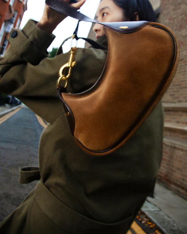 マルベリーの新作ショルダーバッグ「ハックニー」は、“都市(City)と自然(Countryside)をつなぐ”というブランドの哲学を現代的に表現したモデルです。その名前は、優雅な馬種「ハックニー」と、かつて放牧地として知られ、いまやロンドンの創造的エリアとして再び注目を集める地名「ハックニー」に由来しています。伝統と変化を共存させるその象徴的な名称には、ブランドが大切にしてきた英国らしい精神が息づいています。