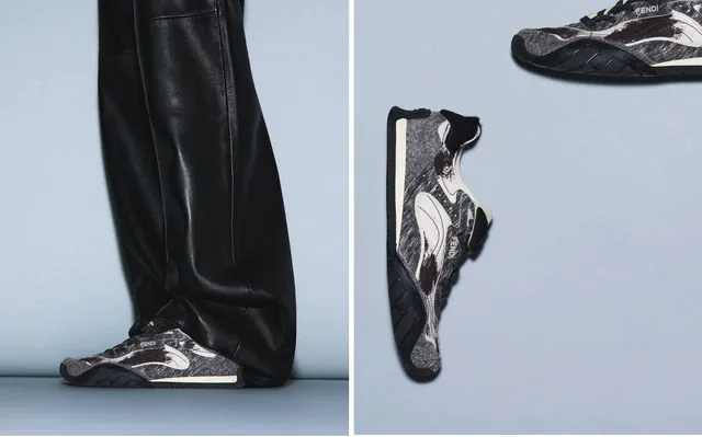 スエード、ポニーヘアー、ナイロンといった上質素材を絶妙に組み合わせ、さまざまなワードローブに調和するデザインに仕上げられています。ポニーヘアー素材を使用した折り返しのシュータンには、「FENDI」ロゴがあしらわれ、ラグジュアリーな印象を際立たせます。さらに、ソールの内部には、1971年にカール・ラガーフェルド(Karl Lagerfeld)が手がけたフェンディのレガシー「アストゥッチョ(Astuccio)」から着想を得たダイアゴナルモチーフが隠されています。アイコニックな意匠をモダンなスニーカーに宿すことで、過去と現在をつなぐフェンディらしいストーリーが息づいています。