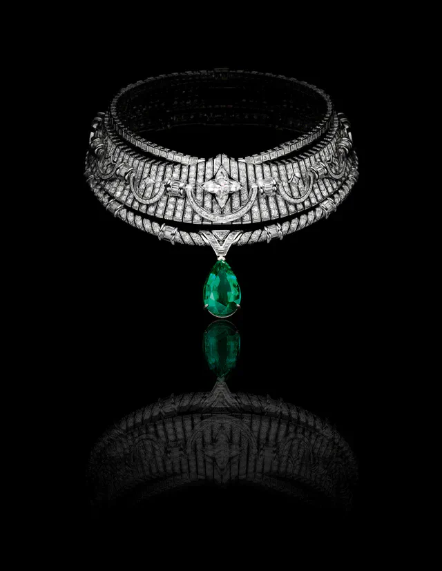 「Apogée」は、ルイ・ヴィトンの最新ハイジュエリー・コレクション「Virtuosity(ヴァーチュオシティ)」の中でも、象徴的な作品の一つです。アトリエの熟練した職人たちによる手仕事が結集し、卓越した技術と芸術的感性が融合したこのネックレスは、メゾンの創造精神そのものを体現しています。その完成度は、ジュエリーを超えた“彫刻的な芸術品”としての存在感を放ちます。