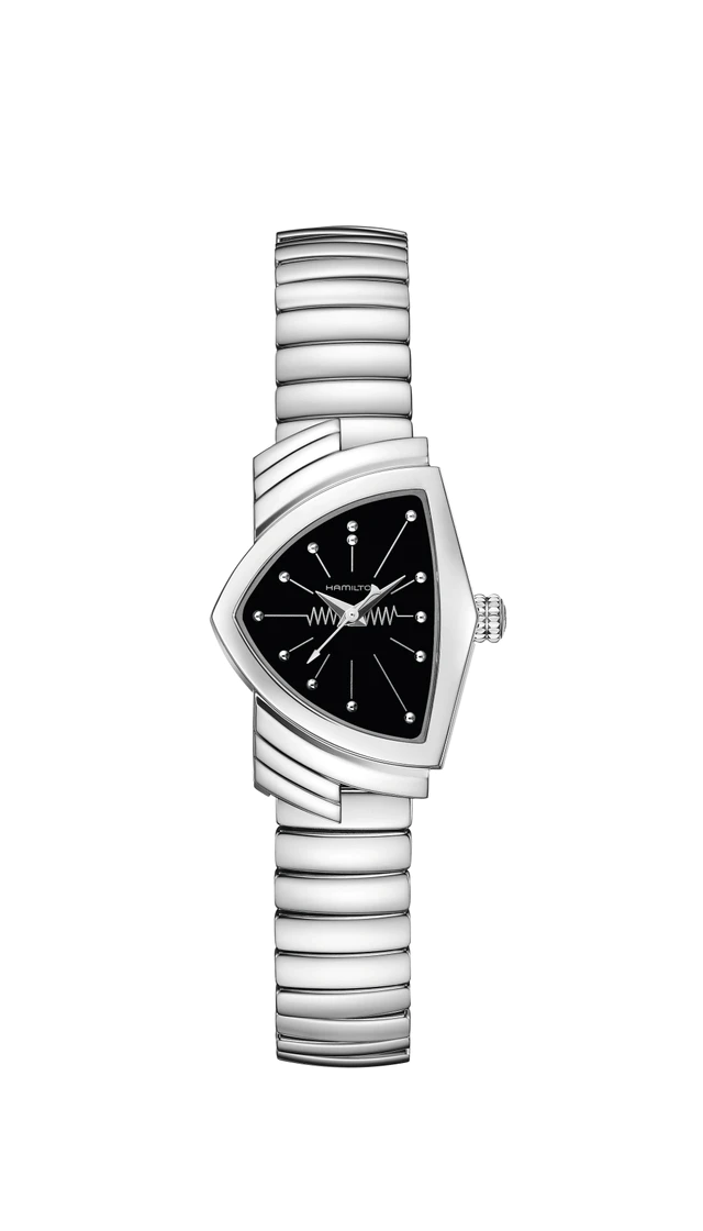 「ベンチュラ S」は、エルヴィス・プレスリーが愛用していたことでも知られる、自由な感性を持つ人のためのアイコンウォッチです。特徴的なフォルムを持つコンパクトなケースに、しなやかな印象のフレックスブレスレットを組み合わせることで、小ぶりでありながら強い個性を放つデザインに仕上がっています。トレンドに敏感で、細部のデザインまでこだわりたい人が選ぶことで、その人らしさをさりげなく語ってくれる一本です。ジュエリー感覚でコーディネートに取り入れることで、ホリデーの装いに少しエッジを加えたいときにも活躍してくれます。