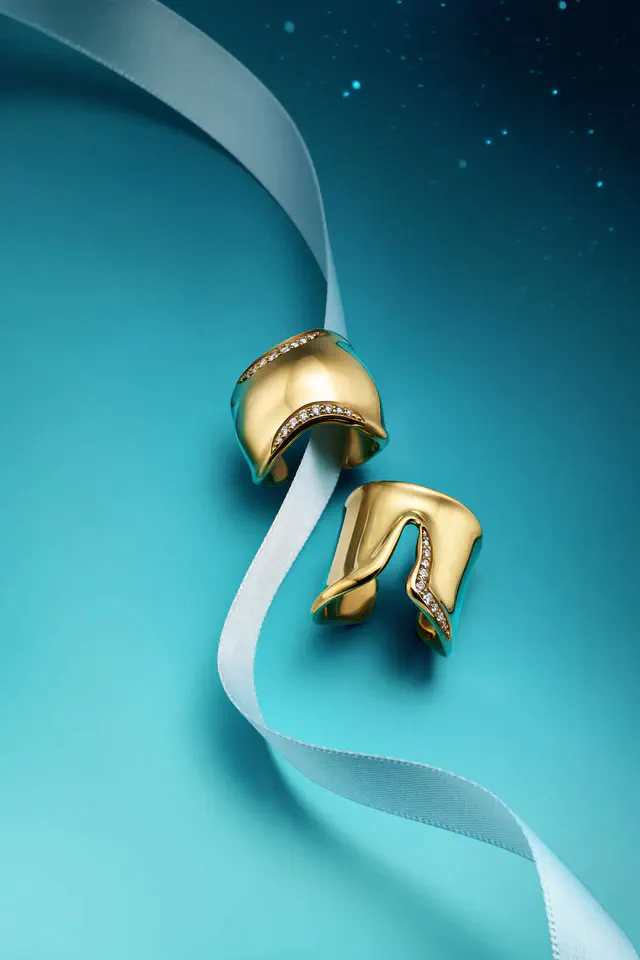 エルサ・ペレッティの独自のビジョンと、自然のフォルムへの深いまなざしから生まれたボーン リングとスプリット リングは、身体のカーブに寄り添いながら指先を包み込むような彫刻的シルエットが魅力です。余分な装飾をそぎ落としたシンプルな表情の中に、強さとしなやかさが同居しており、彼女が築いたエレガンスと革新性のレガシーを映し出しています。18Kイエローゴールドにダイヤモンドがきらめく新作リングは、どの指にもなじむスムーズな着け心地で、ミニマルな装いからドレスアップまで幅広いスタイルに自然に溶け込みます。ペレッティの象徴的なジュエリー「ボーン カフ」や「スプリット カフ」と同様に、美しいフォルムと身に着けたときの快適さを追求した哲学が息づいており、同コレクションのバングルやカフと組み合わせれば、手元全体で流れるようなラインを描くスタイリングも楽しめます。