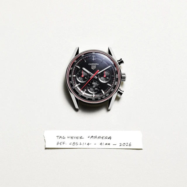 存在感を高めたサイズ感、整理された構造、そして奥行きのあるダイヤルによって、新作「タグ・ホイヤー カレラ クロノグラフ」は、グラスボックスデザインをメゾンの重要なシグネチャーとしてより鮮明なものにしています。このモデルは、精度や耐久性といった機能面だけにとどまらず、日々のスタイルに寄り添う造形美にも価値を見いだす現代の時計愛好家に向けたタイムピースです。モータースポーツのDNAを受け継ぎながら、日常のシーンに自然に取り入れられるバランス感覚が、新しいカレラ像を提示しています。
