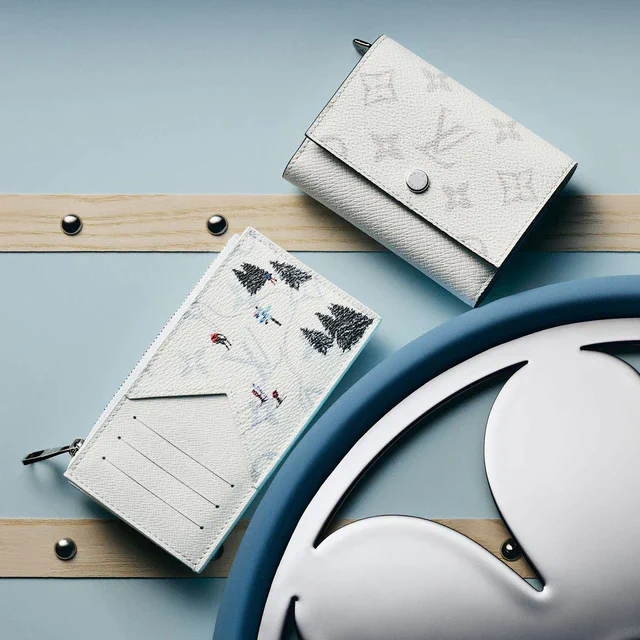 カラフルなモノグラム・キャンバスと、トーン・オン・トーンで仕上げたタイガラマ・レザーを組み合わせた別バリエーションの「コインカード・ホルダー」も見逃せません。キャンバスからレザーへ切り替わる部分には「V」シェイプのカードスロットが配され、視線を引き寄せるアクセントとして機能します。内側には4つのカードスロットとファスナー付きのコインポケット、紙幣やレシートを収納できるフラットコンパートメントを備え、必要なものをすっきりまとめることができます。色と素材のコントラストを楽しみながら、カードと現金をバランス良く持ち歩きたい人にふさわしい、装いの一部として映える一品です。