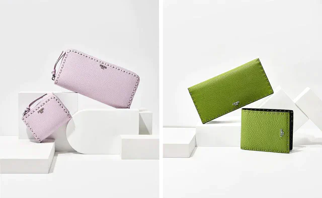 春の訪れを感じさせるウィメンズコレクションには、気分を明るく切り替えてくれるカラフルなスモールレザーグッズが顔をそろえます。大胆なバイカラーと、斜めに配置された「FF」ロゴが印象的な「FF ダイヤモンド(FF DIAMOND)」には、2026年春夏コレクションのメインカラーであるブルームイエローやアネモネ、ライトグリーンがラインナップします。ポケットに収まるサイズ感ながら、色彩のコントラストが装い全体のアクセントとなり、吉日のお守りとしてだけでなく、日々のスタイルを更新するキーアイテムとして活躍しそうです。