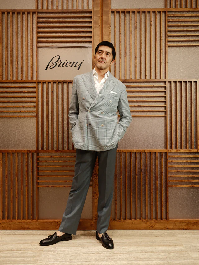 卓越したサルトリアの伝統を物語る手仕事の数々が、テーラーによる息をのむようなライブデモンストレーションを通じて惜しみなく披露されました。この特別な空間で主役を飾ったのは、圧倒的な軽やかさとしなやかさを兼ね備えたSoffioブレザーであり、訪れた人々はブリオーニが誇るテーラリング技術の深淵に触れることとなりました。ブランドの美学が凝縮された会場では、細部にまで宿るクラフツマンシップが心地よい緊張感を醸し出し、装うことの喜びを改めて再確認させる上質な時間が流れていました。