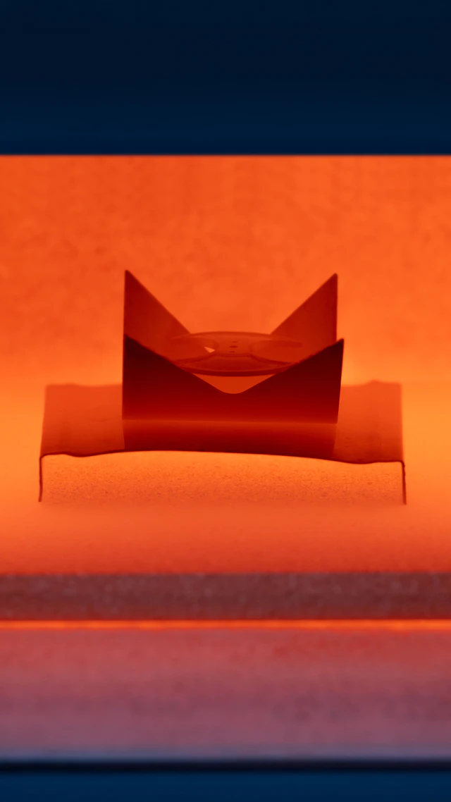 エナメル職人が金箔のシートから微細な小片を切り出し、装飾の舞台となる表面に一点ずつ配置する。この極めて緻密な手作業から始まるのが、膨大な制作時間を要する「Paillonné Ename(パイヨン・エナメル)」という技法です。金箔の上に半透明の色調を持つエナメルを施し、高温の窯で焼成を繰り返すことで、光を閉じ込めたかのような奥行きが生まれます。