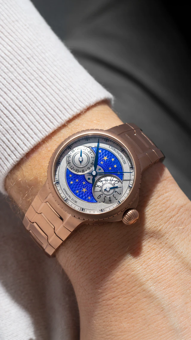 クロノスイス 夜空を腕元に閉じ込める贅沢、ハイエンドウォッチ「パルス GMT エナメル スカイ ゴールド」を発売