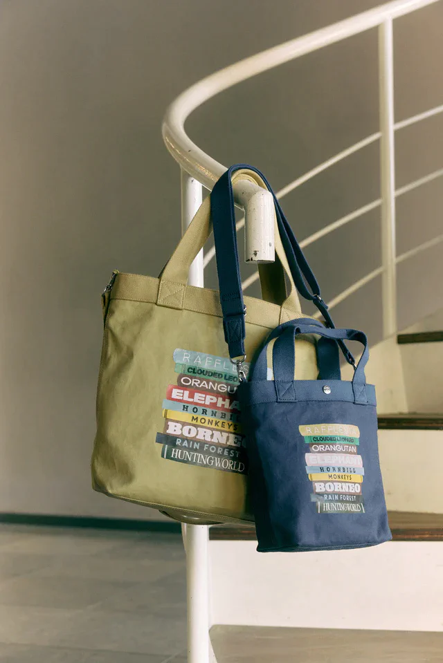 アカデミックな趣と可愛らしさが同居するこのデザインは、ボルネオの動物たちへ関心を寄せる入り口となってほしいという願いを込めて構築されました。日常使いに最適な2型のバッグに加え、ジェンダーレスに楽しめるTシャツ、そして現代の厳しい日差しから守ってくれる傘といった充実のラインアップが揃います。