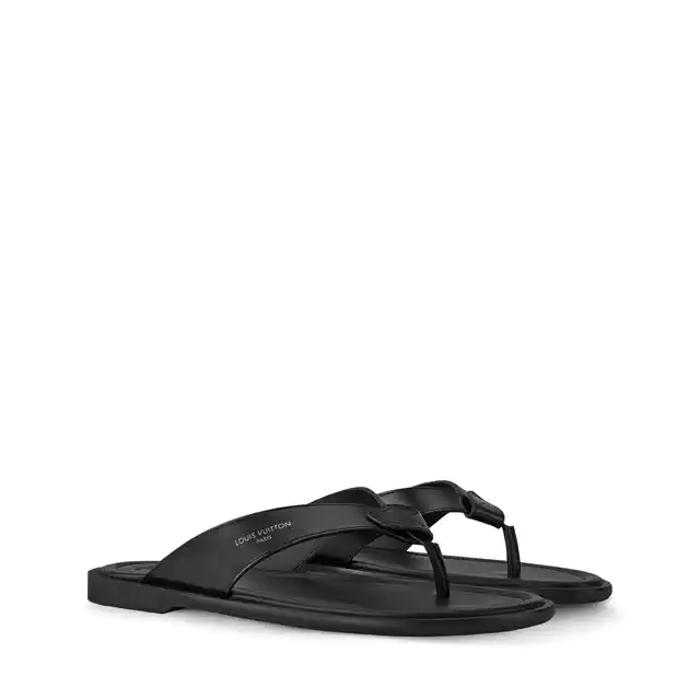 上質なスムースレザーを採用し、夏のベーシックスタイルに都会的なニュアンスを加えたのがLV サンセット トングです。デザインの核となるVシェイプストラップには、ルイ・ヴィトンの伝統的なバッグ制作から着想を得た、ハンドルマウントを折り畳んだかのような意匠が巧みに組み込まれています。そこに施されたホットスタンプのシグネチャーが、控えめながらも確かな存在感を放ちます。パッド入りのインソールとしなやかなラバーアウトソールの組み合わせは、快適な歩行を実現し、優雅なバカンスシーンの頼れるパートナーとなるに違いありません。