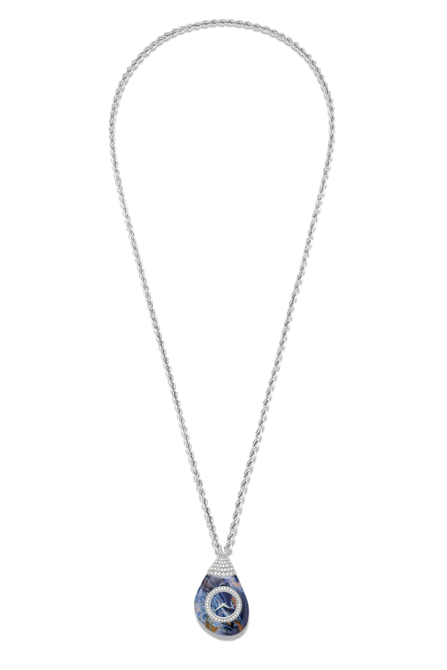 現代の感性で再構築された「スウィンギング ペブルズ」は、タイガーズアイなどの天然石からシームレスに削り出された、滑らかな小石のようなフォルムが特徴です。繊細にくり抜かれた石のケースには自社製ムーブメントが収められ、しなやかなゴールドチェーンと調和してピアジェの専門知識を讃えています。革新的な精神を継承するこのペンダントウォッチは、大胆さと心地よい触感を両立させ、洗練された姿で日常に芸術的な彩りを添えてくれます。