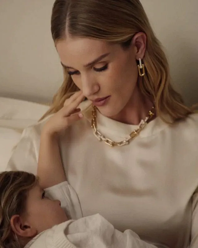 ニューヨークの邸宅で過ごす穏やかな昼下がり、傍らで遊ぶ娘の気配を感じながら、ロージーは自らの母へ電話をかけます。首元で高貴な輝きを放つのは、パヴェ ダイヤモンドが敷き詰められたティファニー ハードウェアのネックレスです。贈り物への感謝を伝え、かつての思い出を辿る彼女の言葉からは、自らが母となったことで初めて理解できた深い愛情が溢れ出します。今抱いているこの想いが、いつか自身の娘にも引き継がれてほしいという静かな願いは、全ての母たちの心を優しく包み込むことでしょう。
