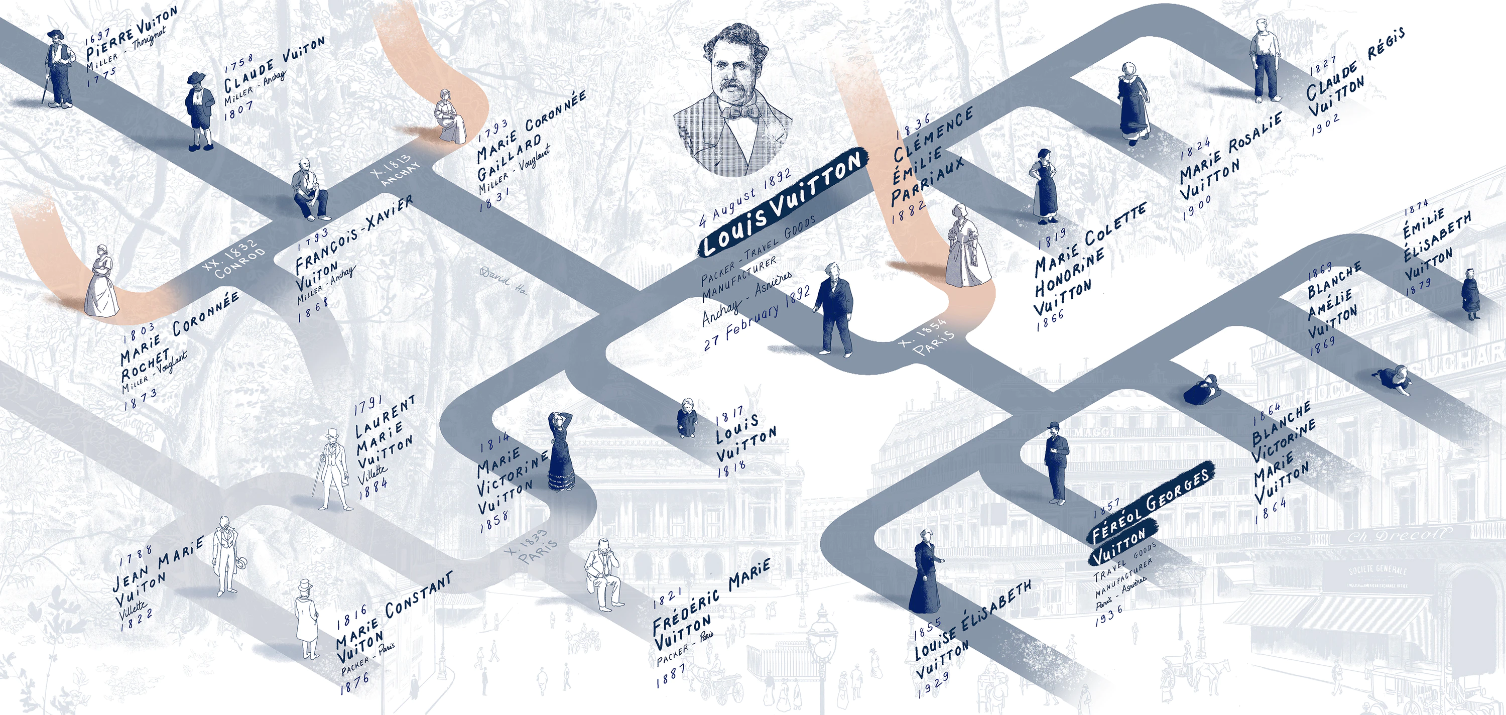 この時代、ルイ・ヴィトンにとって、そして一族にとってもう一つの重要な節目が訪れていた。1880年、息子ジョルジュが結婚したことを機に、ルイは事業の経営権の多くを彼に譲り、自らは一線を退く準備を始めていたのである。
